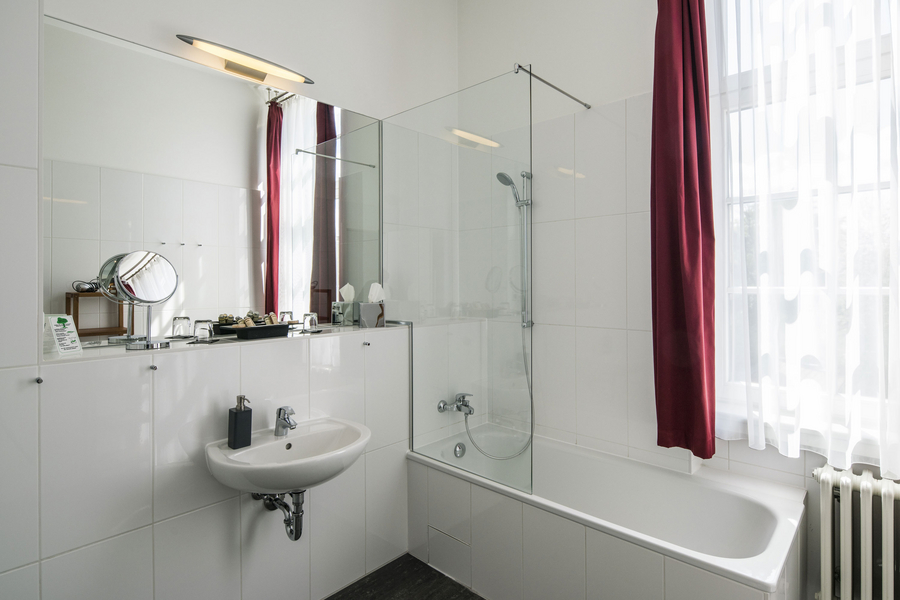 El hotel es el edificio más espectacular del campus, protegido como monumento y conocido en Berlín. El hermoso edificio de estilo neorrenacentista fue construido en 1902 como una casa de baños públicos, más sobre arquitectura e historia.