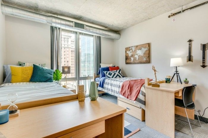 The Flats ofrece habitaciones individuales y dobles en cada apartamento, con baño compartido, cocina y sala de estar. Ideal para estudiantes que desean descubrir la cultura local de Chicago y explorar el área con otros estudiantes internacionales. La residencia cuenta con administración y mantenimiento en el lugar y organiza eventos comunitarios. Las instalaciones incluyen una cocina totalmente equipada con horno eléctrico / estufa, microondas y refrigerador, un sistema de calefacción y refrigeración de bajo consumo y puertas de dormitorio con cerradura individual. El edificio se beneficia de un gimnasio, sala de estar, instalaciones de lavandería, centro de computadoras, máquinas expendedoras y WiFi.