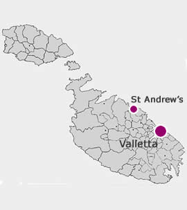 Está situada en una agradable zona llamada San Julians - Pembroke. Queda muy cerca de la zona que tiene mas vida nocturna de la isla, con terrazas, restaurantes, y está a 30 minutos de La Valleta en autobús.